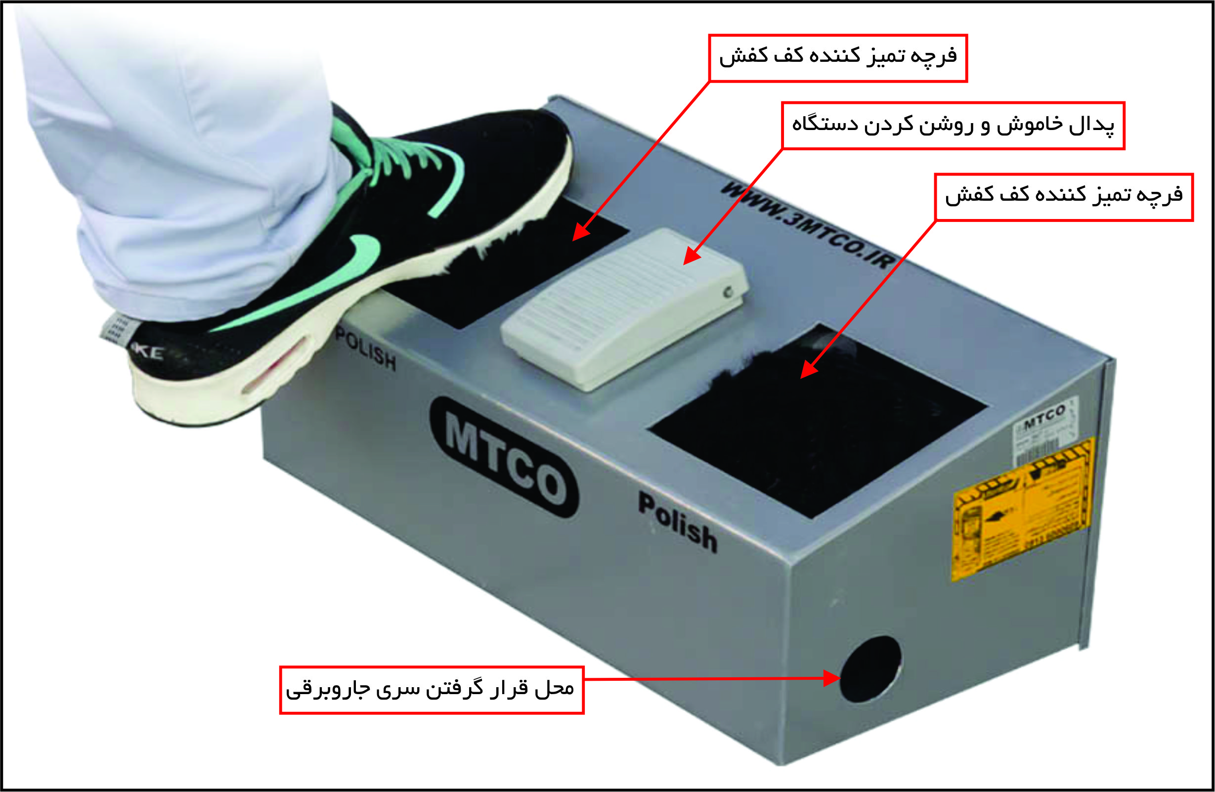 دستگاه تمیز کننده کف کفش MT100 ساخت کشور ایران می باشد