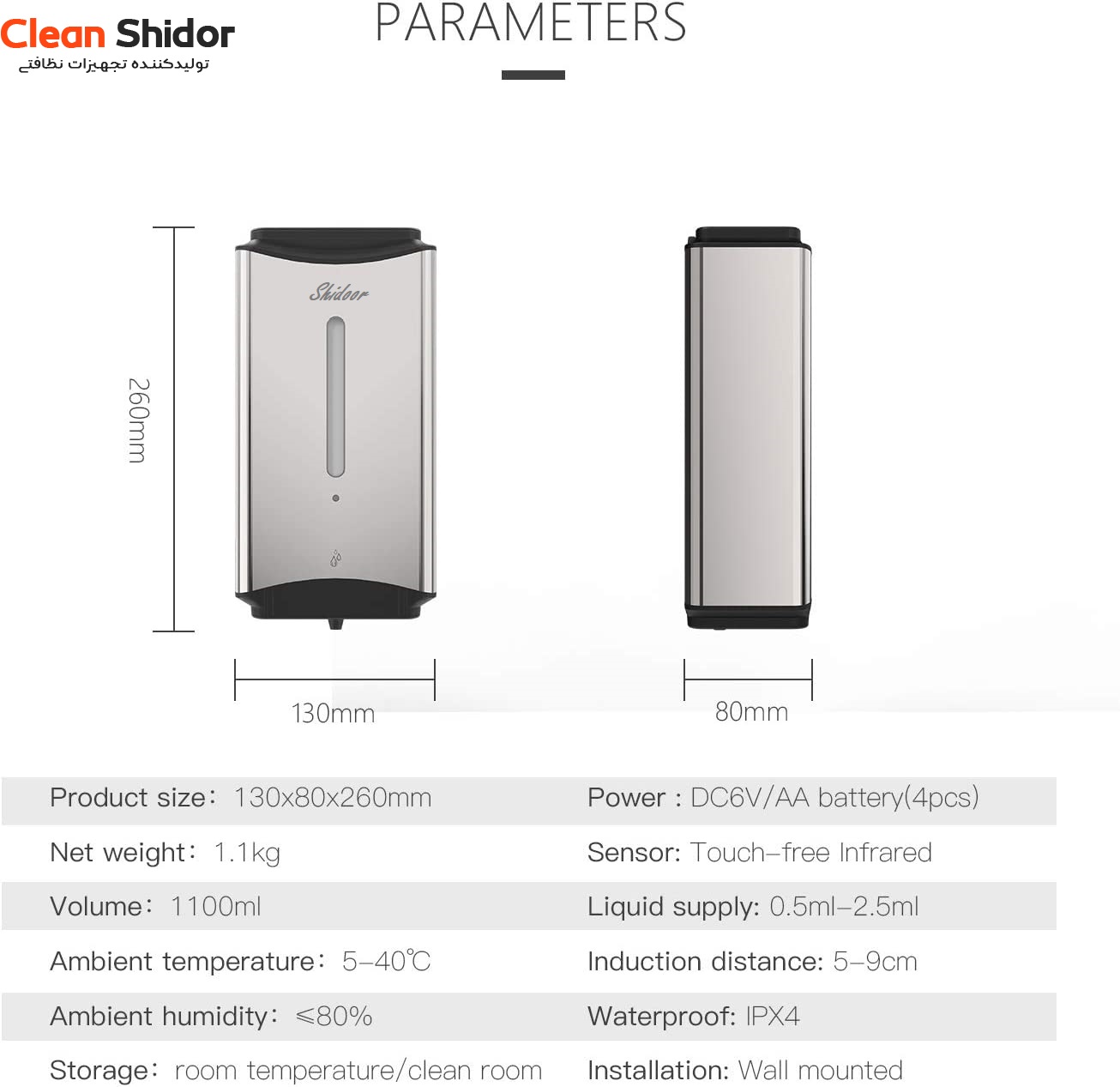 ویژگی های صابون ریز اتوماتیک شیدور مدل 230