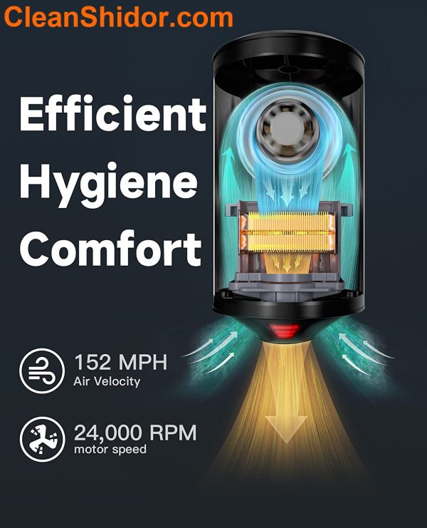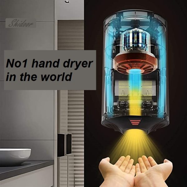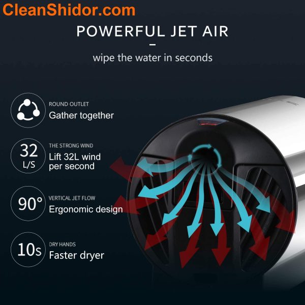 -با سرعت  75 متر در ثانیه باد گرم را به بیرون می دمد و در 10 الی 12 ثانیه دست ها را خشک می نماید. این دست خشک کن حرارتی بین 20 الی 40 درجه حرارت تولید می کند متناسب با دمای محیط که برای خشک کردن دست مناسب می باشد .