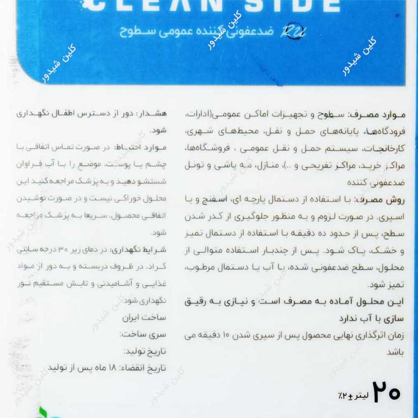 محلول ضدعفونی کننده سطوح و محیط Clean Side حجم4لیتر