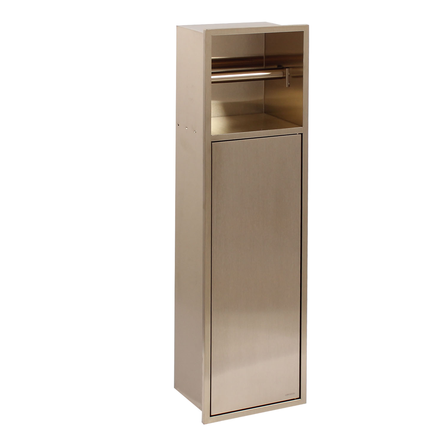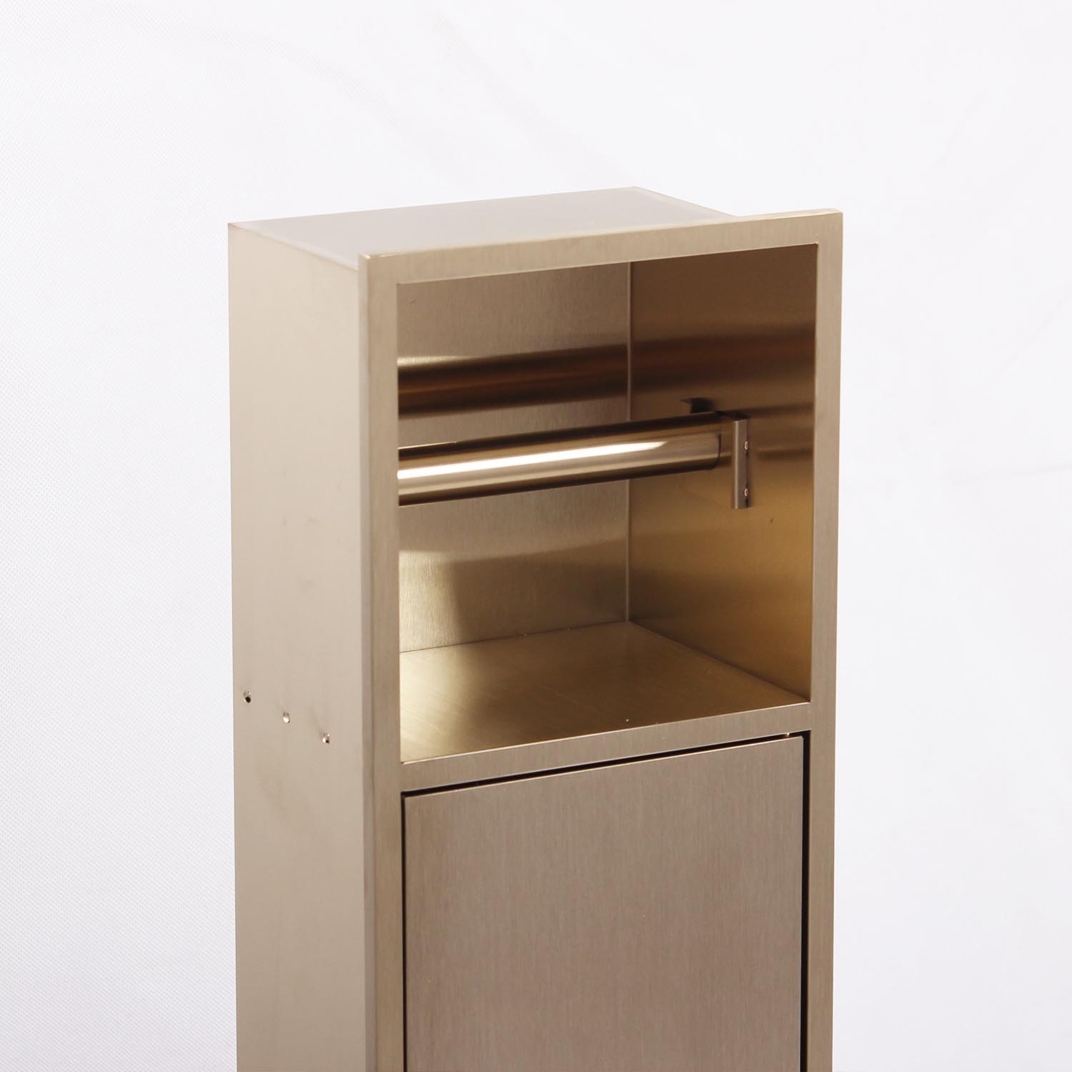 مخزن دستمال استیل جهت قرارگیری دستمال رولی کوچک،قابل نصب به صورت توکار مناسب برای محیط هایی با فضای کمتر میباشد و درب آن به صورت مگنتی با کمی فشار قابل استفاده است