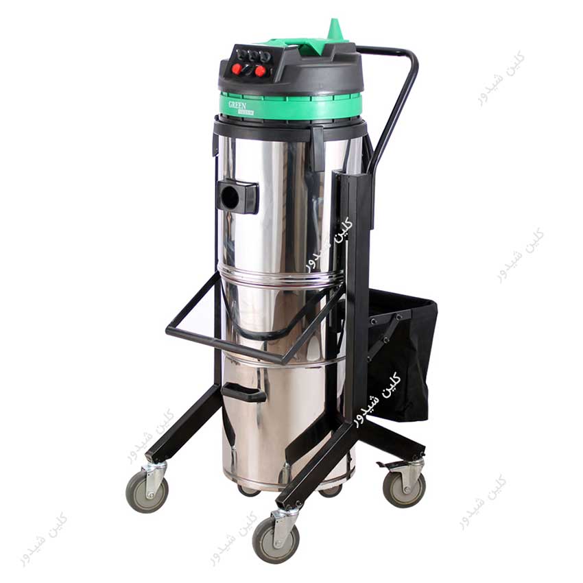 جاروبرقی صنعتی Green Master D953A دارای سه موتور صنعتی با قابلیت مکش آب و خاک، ترالی محکم و روان، بدنه استیل و سیستم تخلیه زباله
