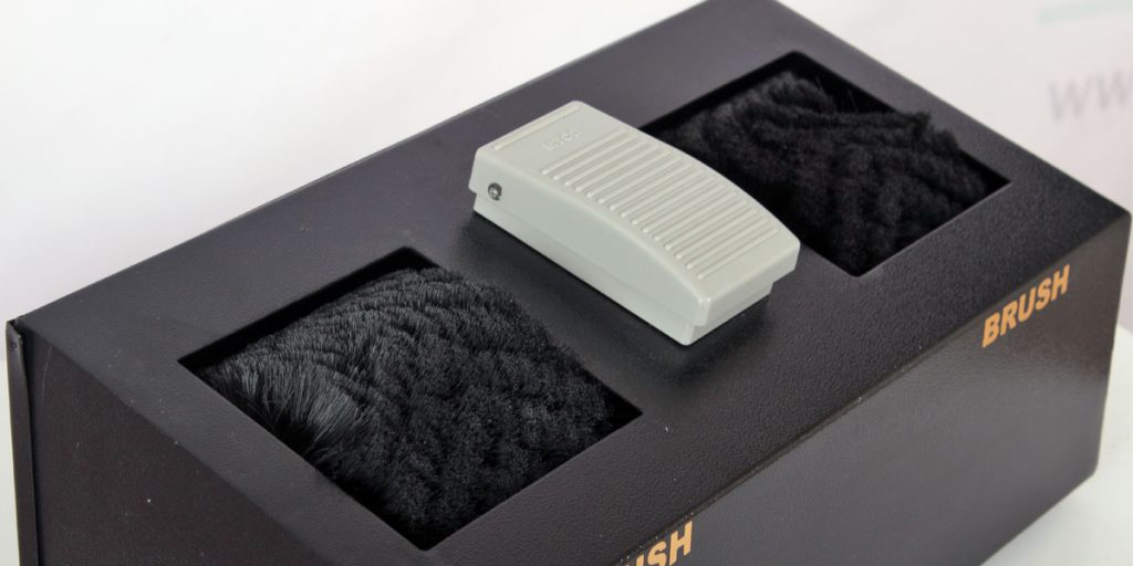 دستگاه تمیز کننده کف کفش MT100 بسیار کاربردی و نحوه کارکرد آن بسیار راحت است. روشن کردن دستگاه بدون نیاز به خم شدن فرد تنها با فشار دادن پا بر روی پدال دستگاه روشن و مجددا با فشار دادن پدال خاموش میشود. و با قرار دادن پا بر روی فرچه های تعبیه شده بر روی دستگاه اقدام به تمیز کردن کف کفش میکند.