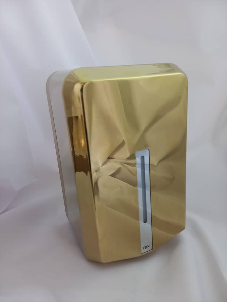 - صابون ریز اتوماتیک طلایی ریکس دارای حجم مخزن 1100 سی سی میباشد.