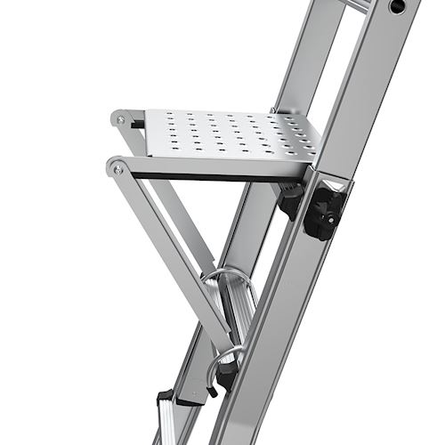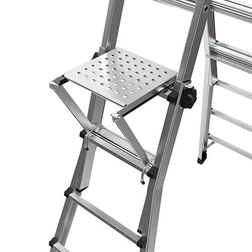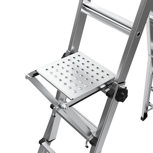 - این محصول مانند یک پله عمل می کند و دارای سطحی نسبتا پهن است که کاربر به راحتی هنگام استفاده از نردبان پا بر روی این پله بگذارد. شاید برای شما نیز پیش آمده باشد که هنگام استفاده از نردبان مخصوصا در پله های بالاتر تعادل خود را از دست داده باشید و از نردبان افتاده باشید و یا از ترس از دست دادن تعادل بالا نردبان نرفت و کار خود را انجام نداده اید.