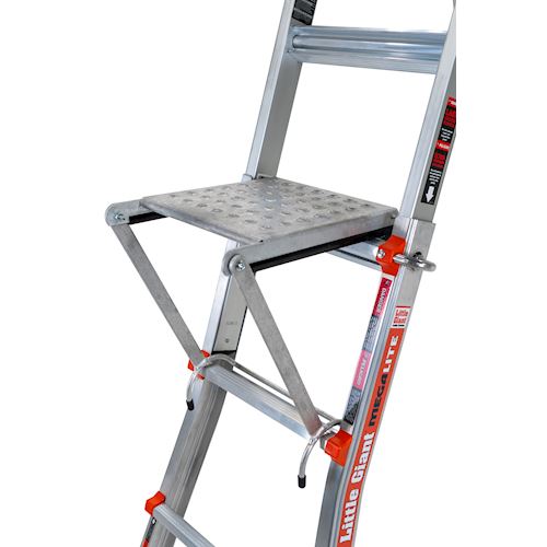 - کارایی این سکو بسیار راحت است و همانطور که گفته شد مانند پله عمل می کند و به راحتی می توانید بر روی آن پا بگذارید و نگران افتادن از نردبان نباشید. شما می توانید این سکوی کار نردبان لیتل جاینت Work Platform را بر روی هر یک از نردبان که می خواهید قرار دهید.